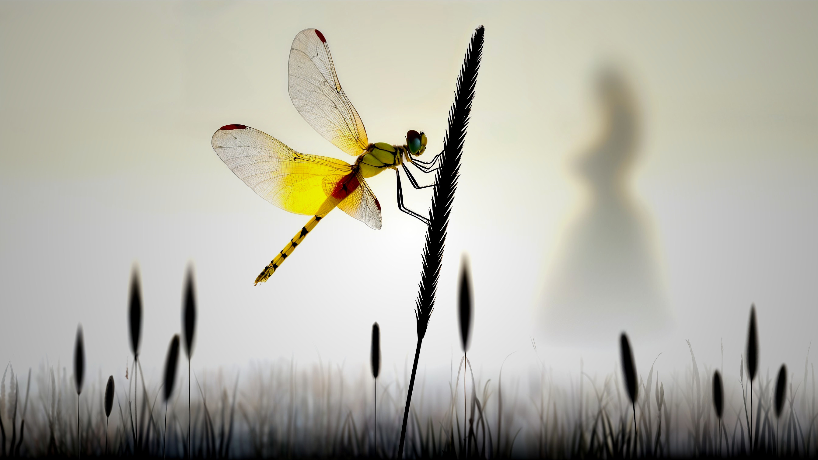 Serene Dragonfly in a Misty Landscape