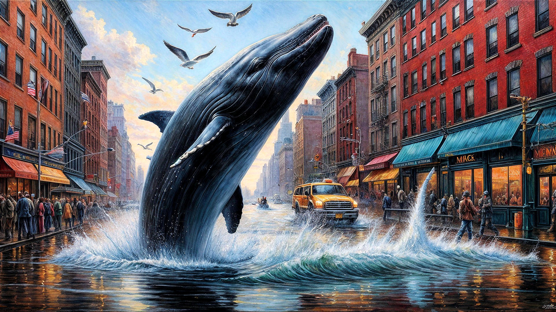 Whale Surprises City in Surreal Flood Scene