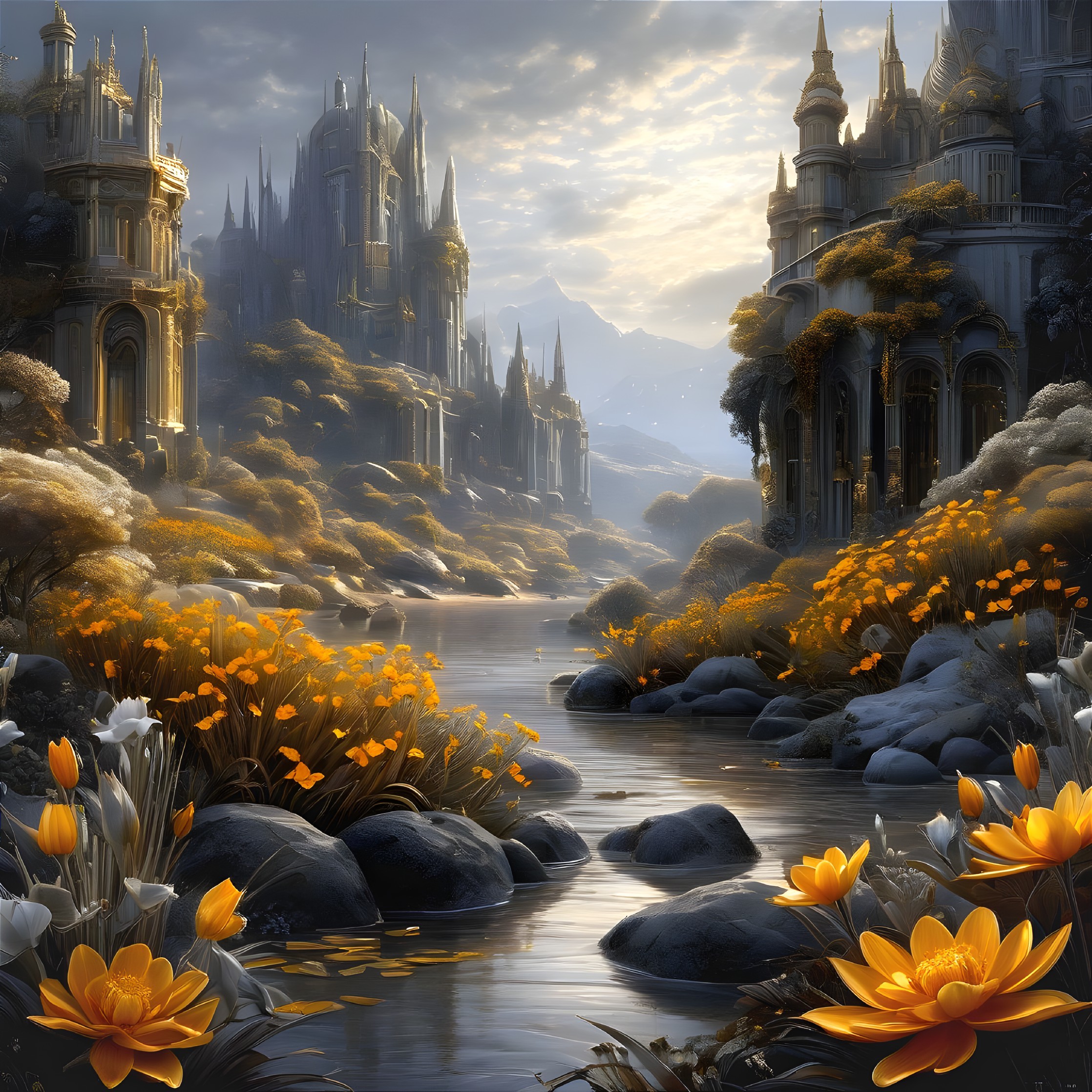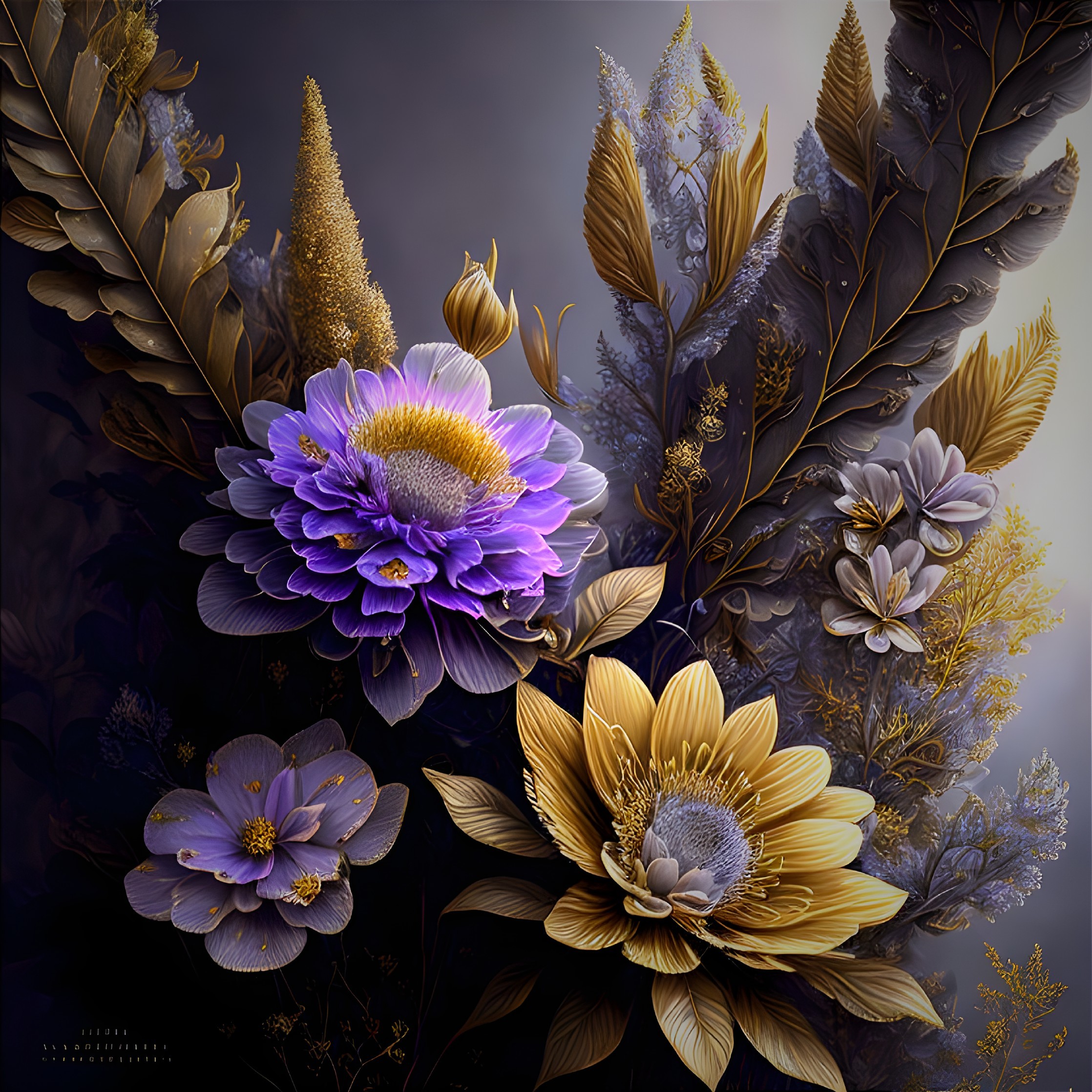 Enchanted Floral Realm: A Masterpiece in Gray-Gold
