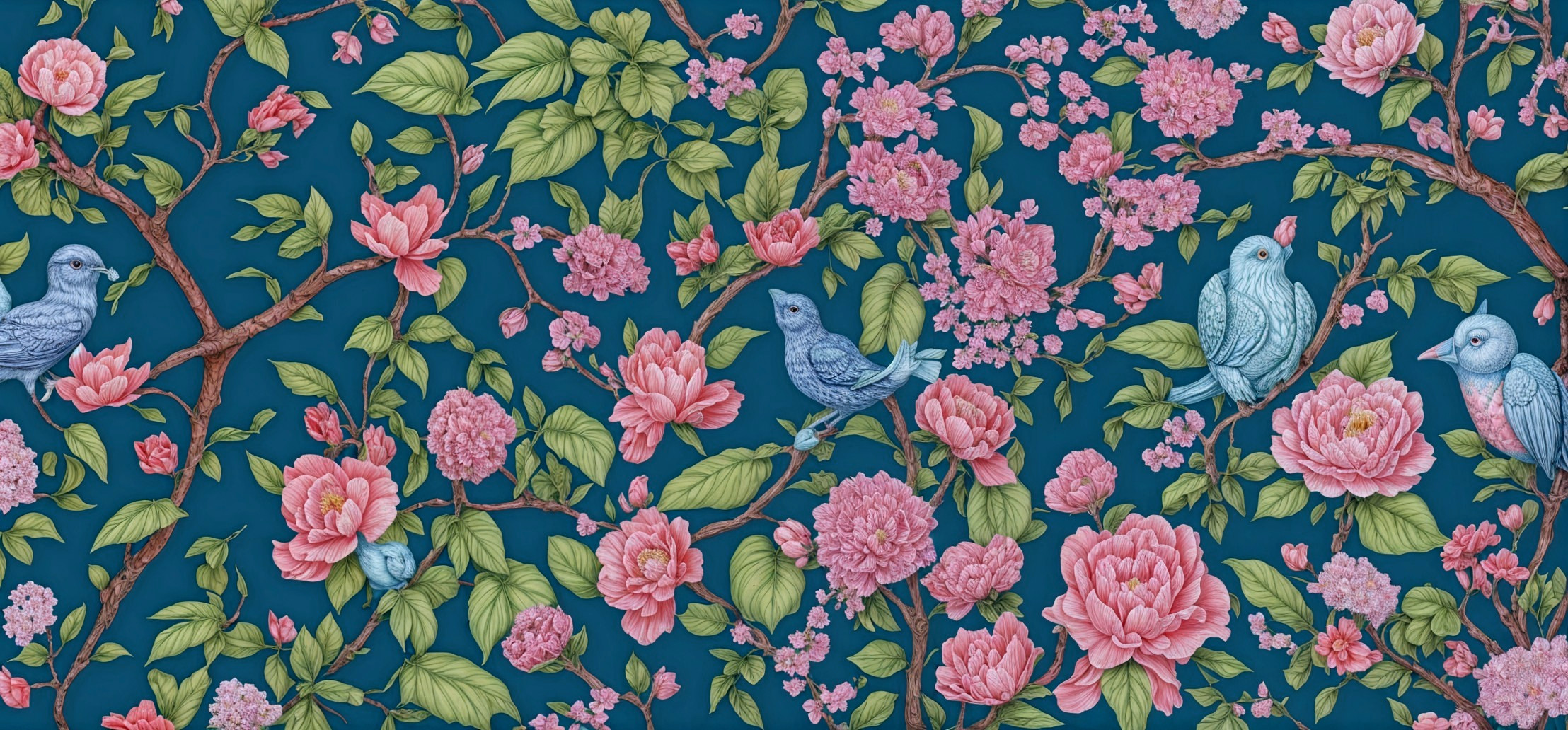 Vibrant Birds and Blossoms Pattern Design