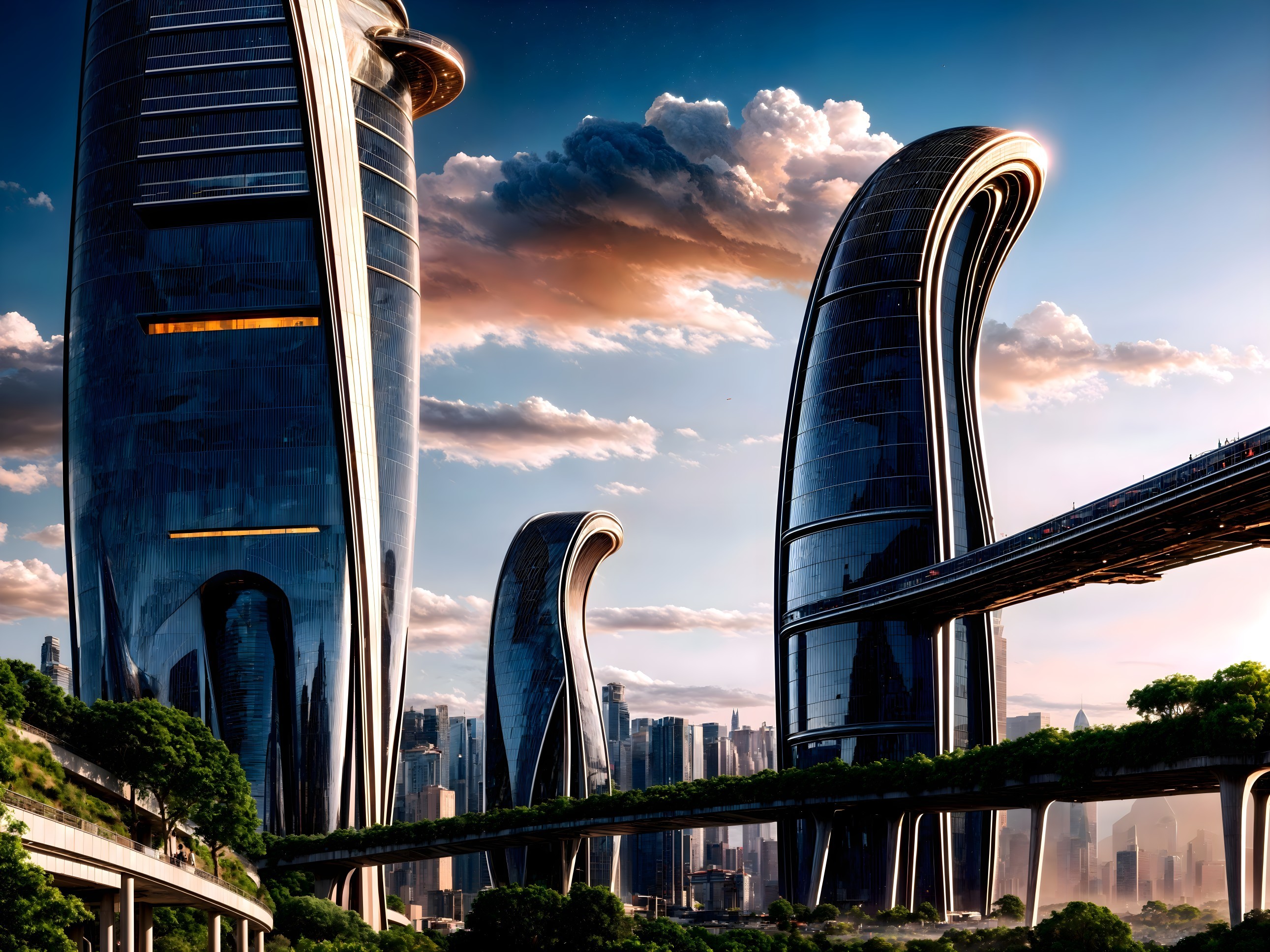 Sky High + Flying Dancing Leaning Buttresses. SK;145:241220. Cityscape: Nature Meets Innovation