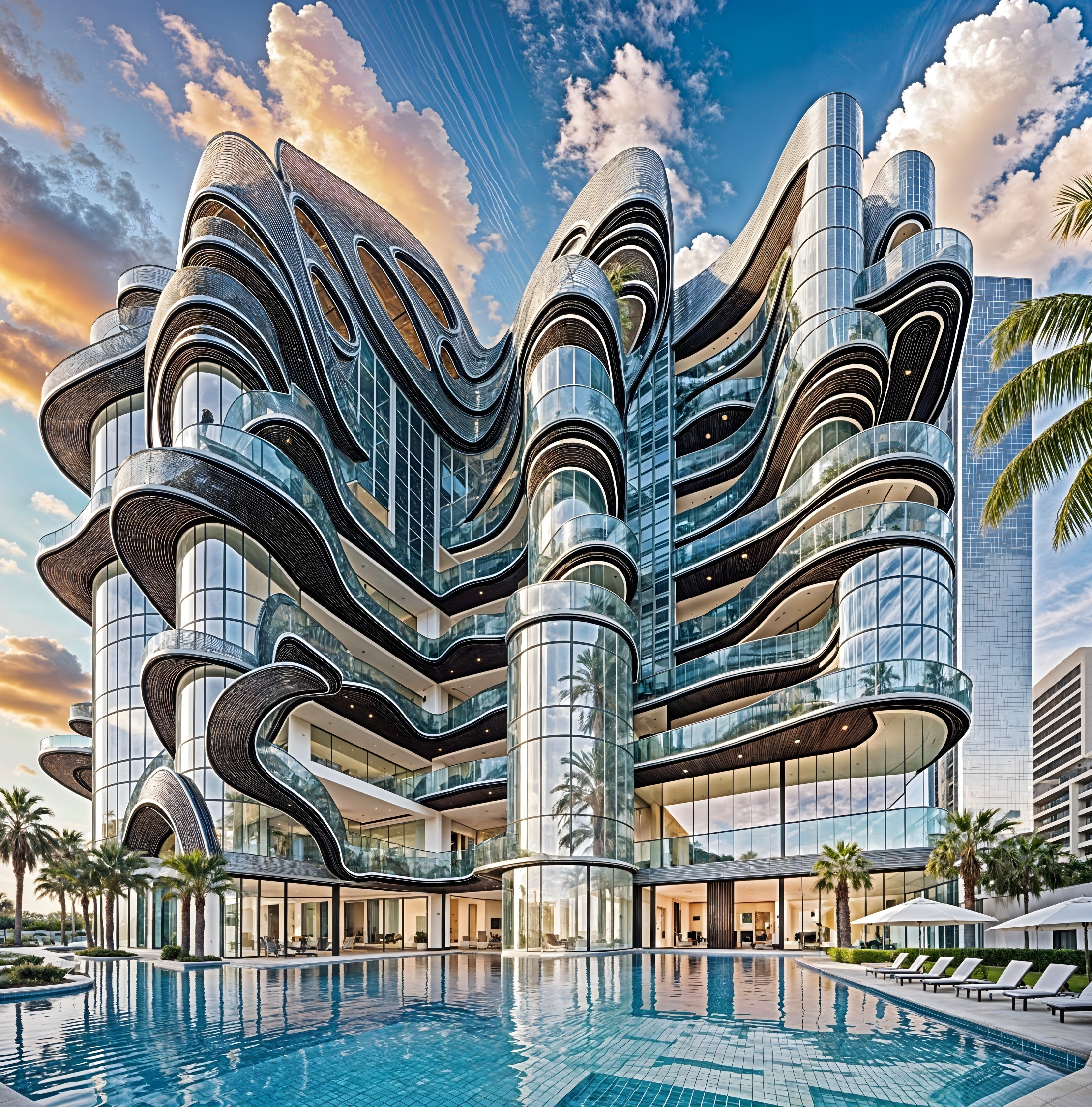 Sky High SK 20:25 02 22. www.omarsolh.com Wavy Architectural Marvel in Vibrant Setting