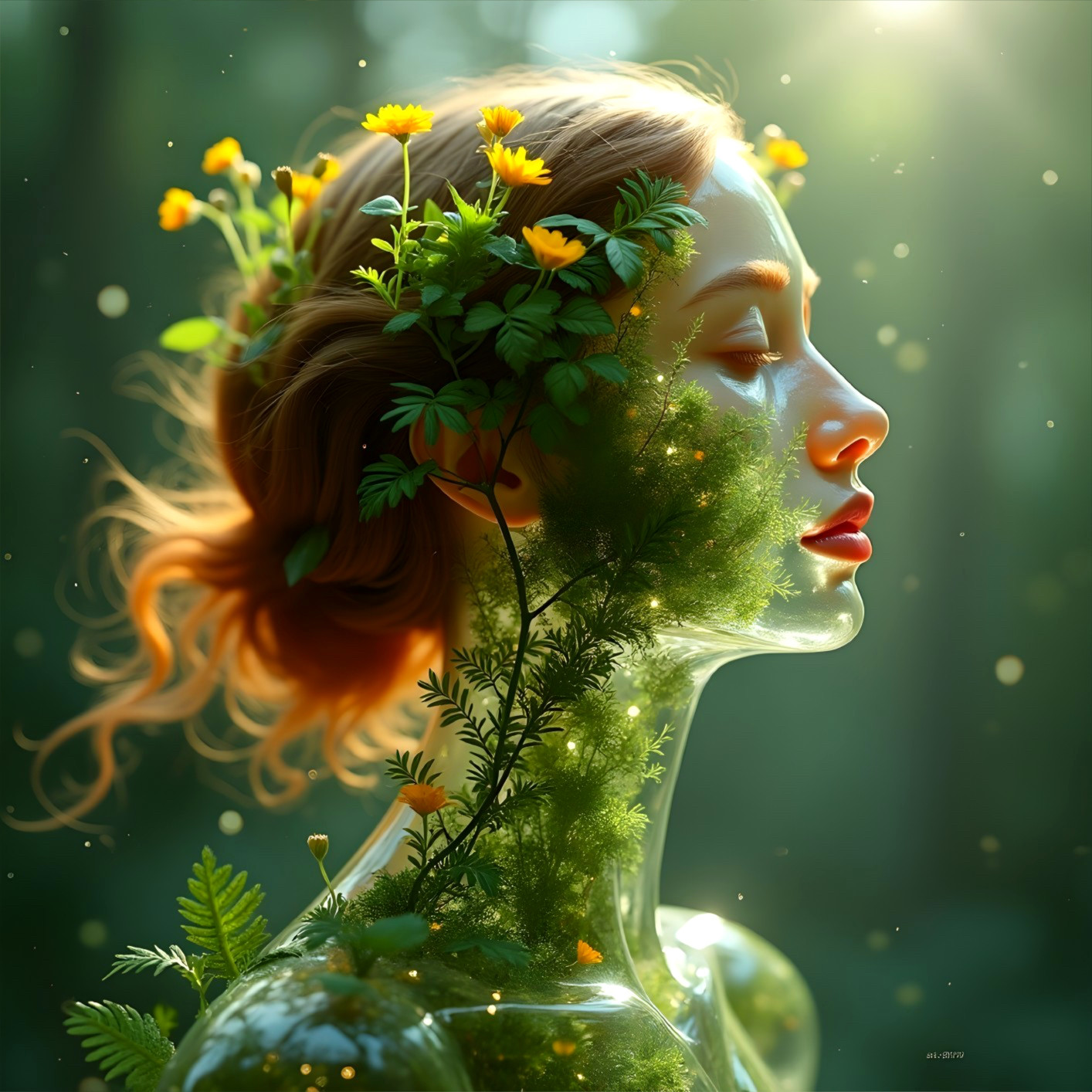 Ethereal Beauty: Nature's Glass Portrait by Sioux-original,prompt
