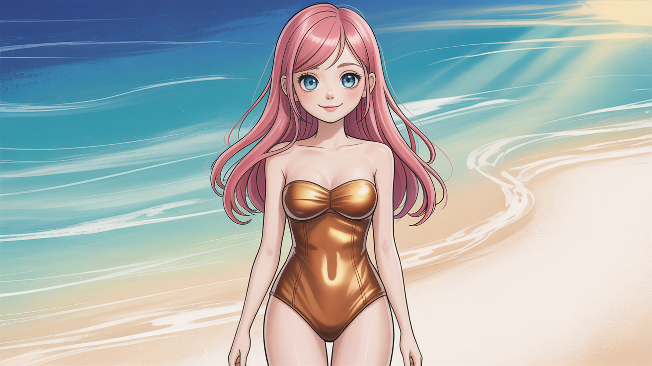 Charming Anime Girl in Bronze Swimsuit