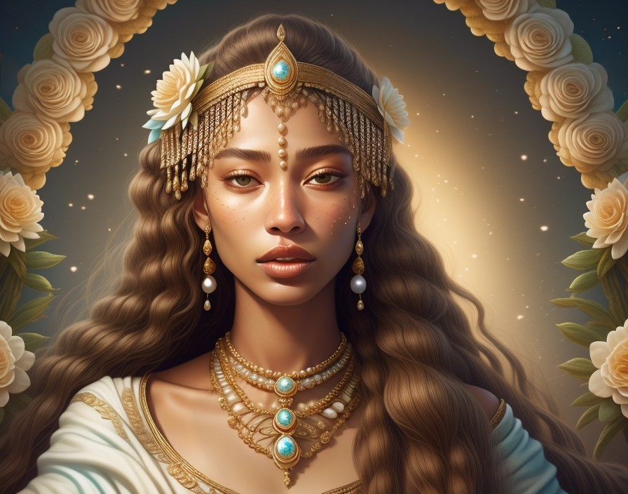Ethereal Beauty: Ornate Jewelry and Flowing Hair