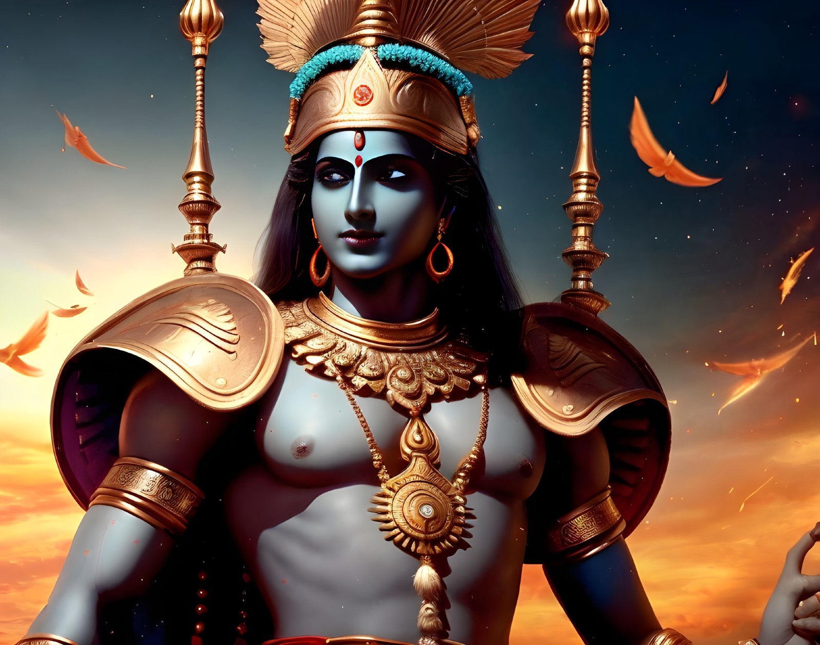 Mystical Warrior Under Autumn Sky