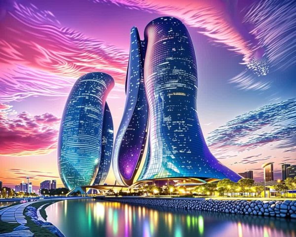 Sky High Flying Buttresses 25 06 03. SK 38. www.omarsolh.com Sunset Over Futuristic Cityscape
