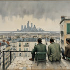 Surreal Cityscape with Bowler-Hatted Men