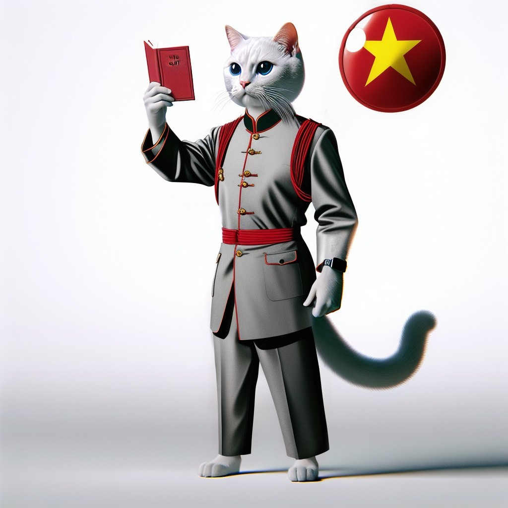 Meow Zedong Holds Up a Copy of his Little Red Book