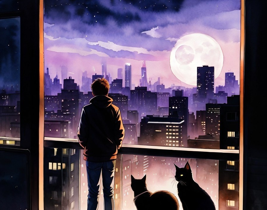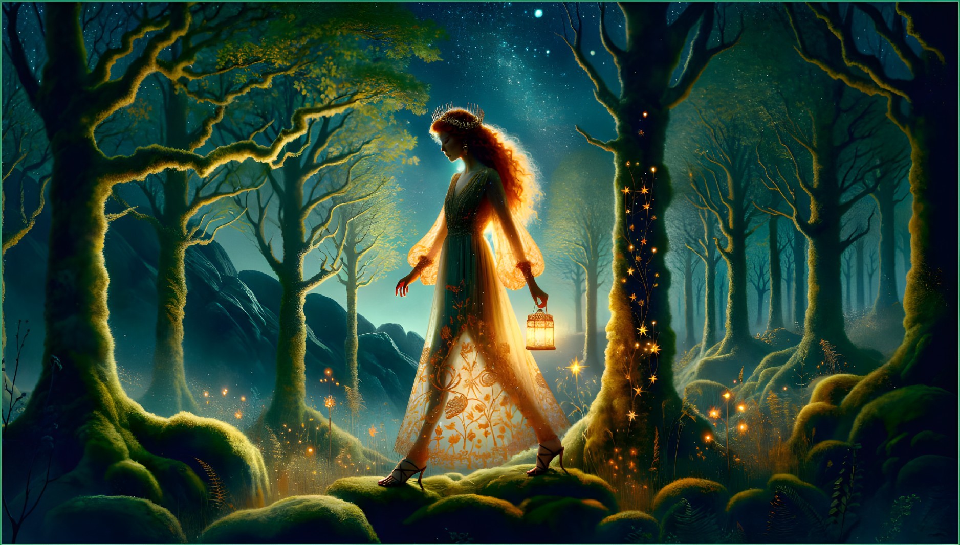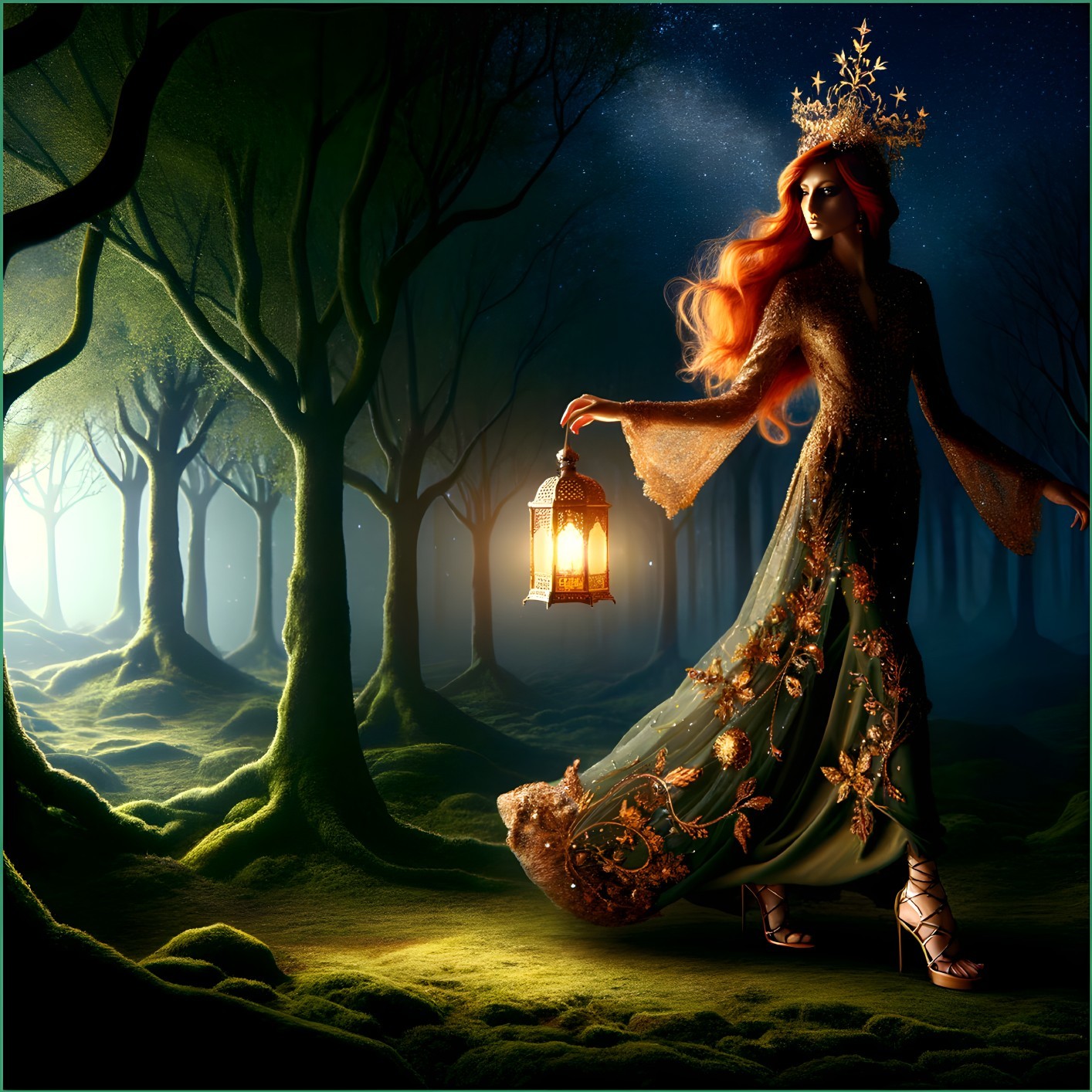 Moonlit Mystique: The Enigmatic Red-Haired Wanderer