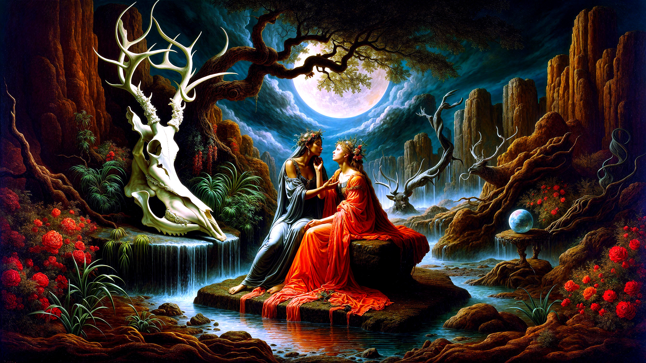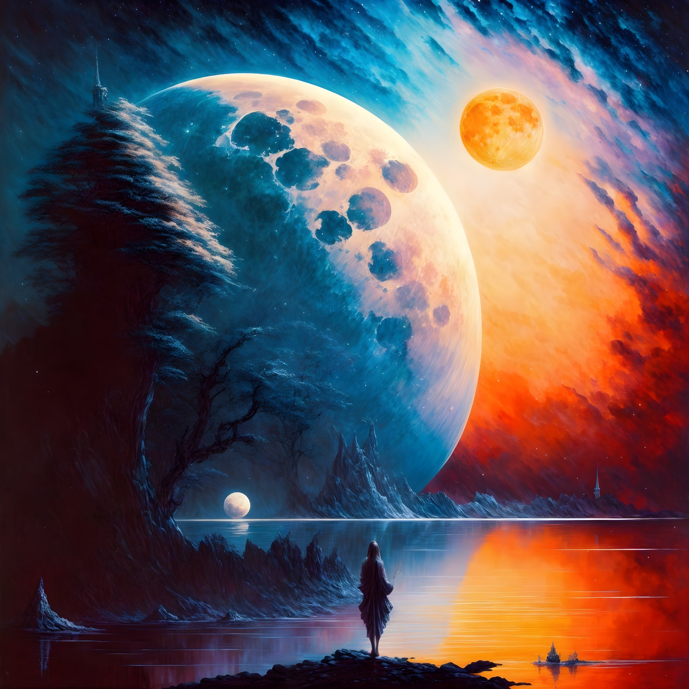 Mystical Landscape Under Two Moons