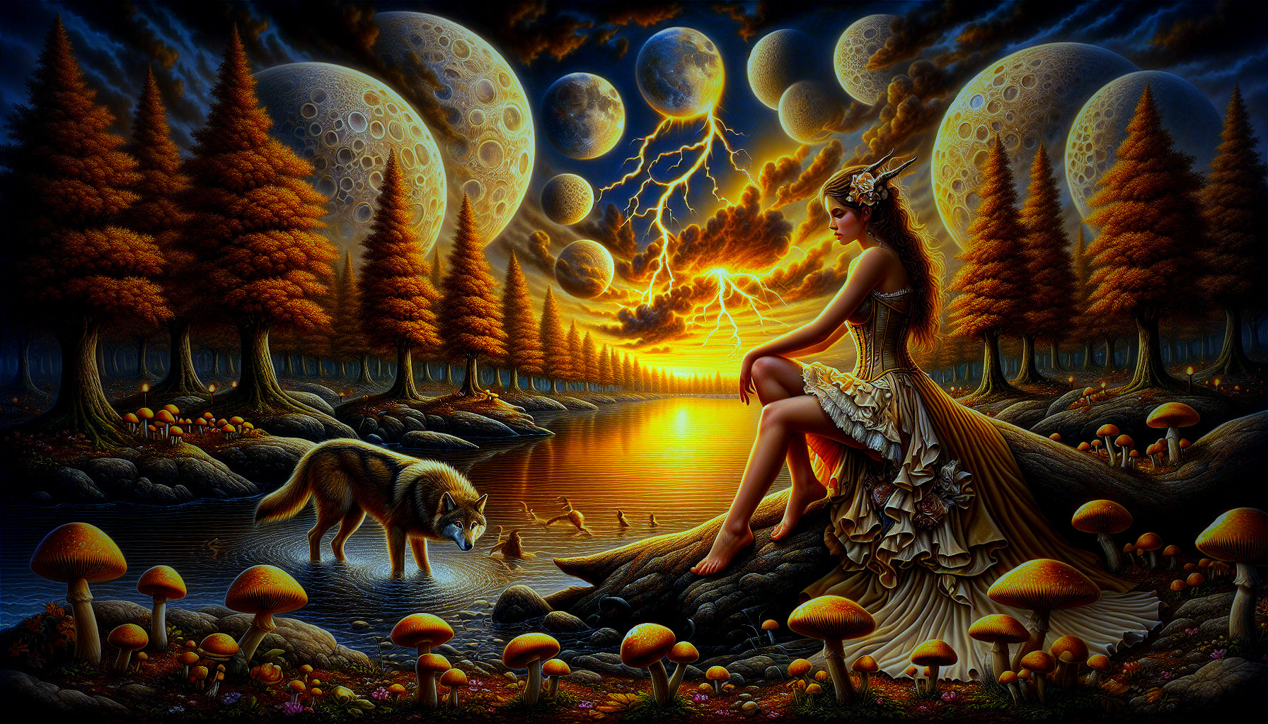Mystical Wolf with a Woman in Enchanted Landscape