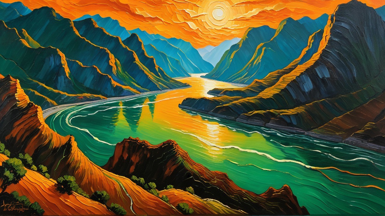 Majestic Mountains at Sunset in Bold Colors