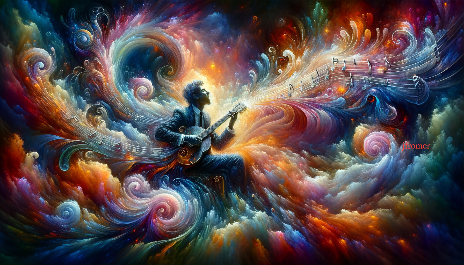 Cosmic Guitarist in a Futuristic Realm