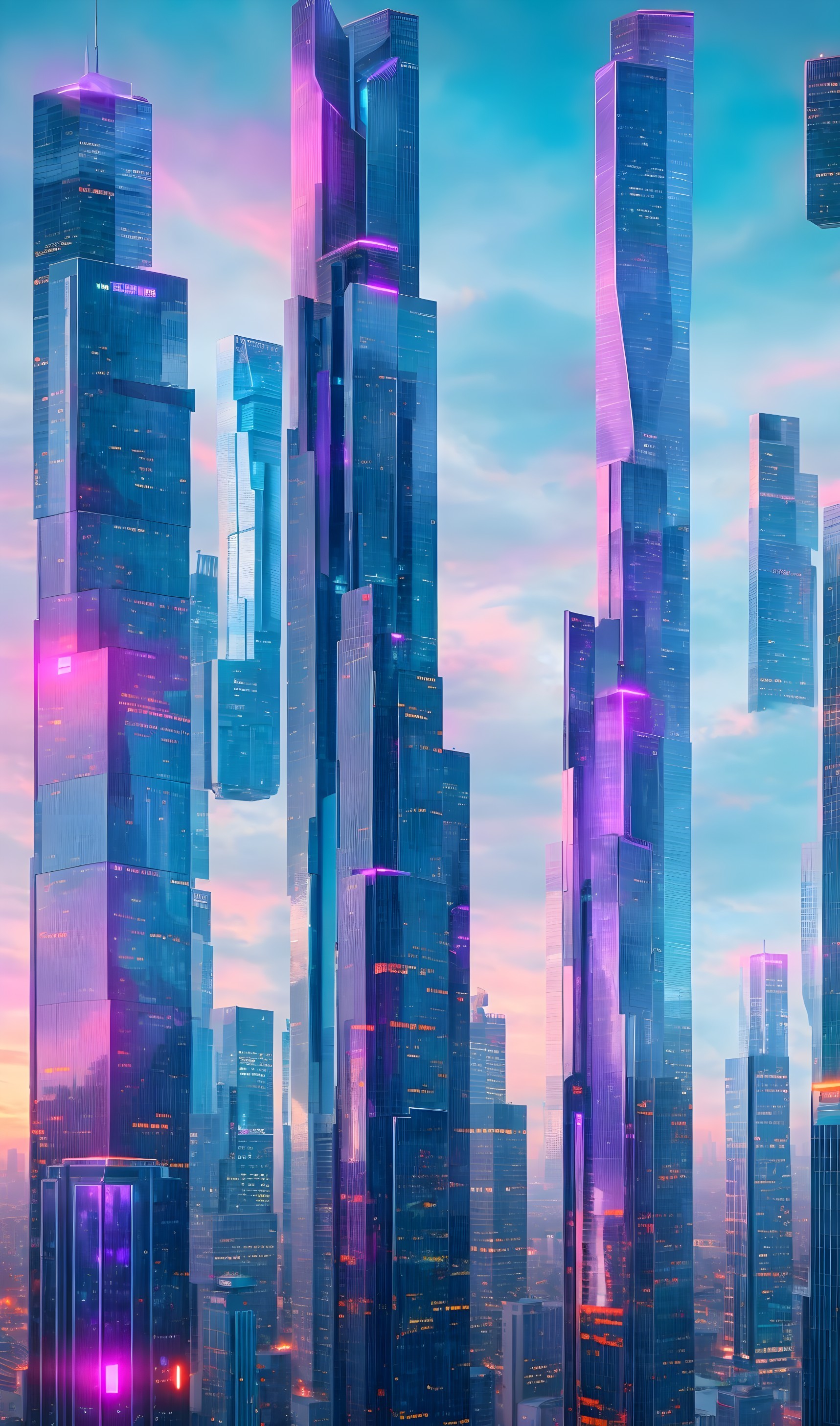Neon Nightscape: Glowing Cyber Towers