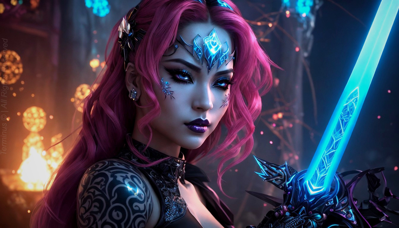 Floral Fantasy: Pink-haired Beauty in Ornate Setting
