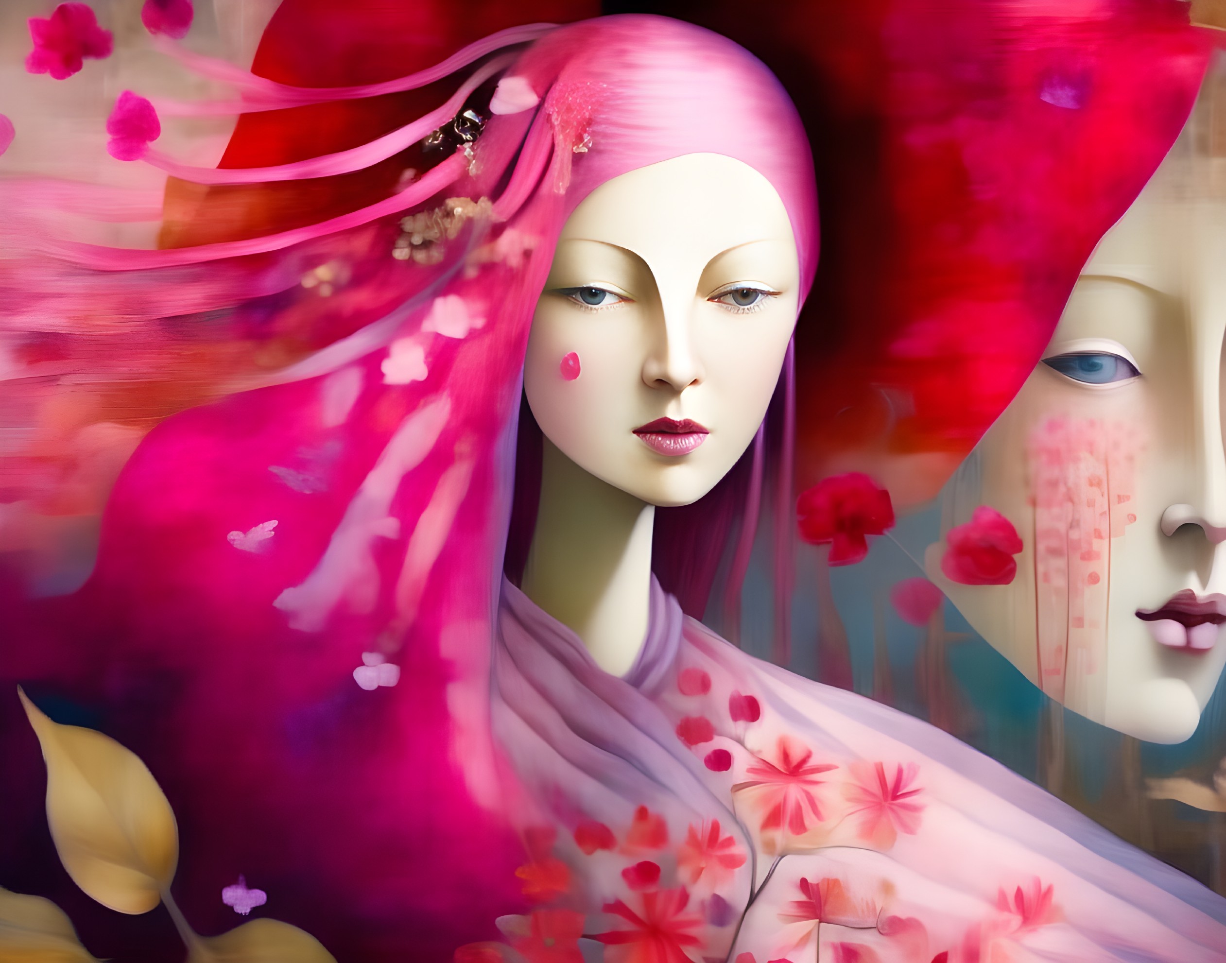 Enchanted Beauty: Oil Painting of a Pink-Haired Woman