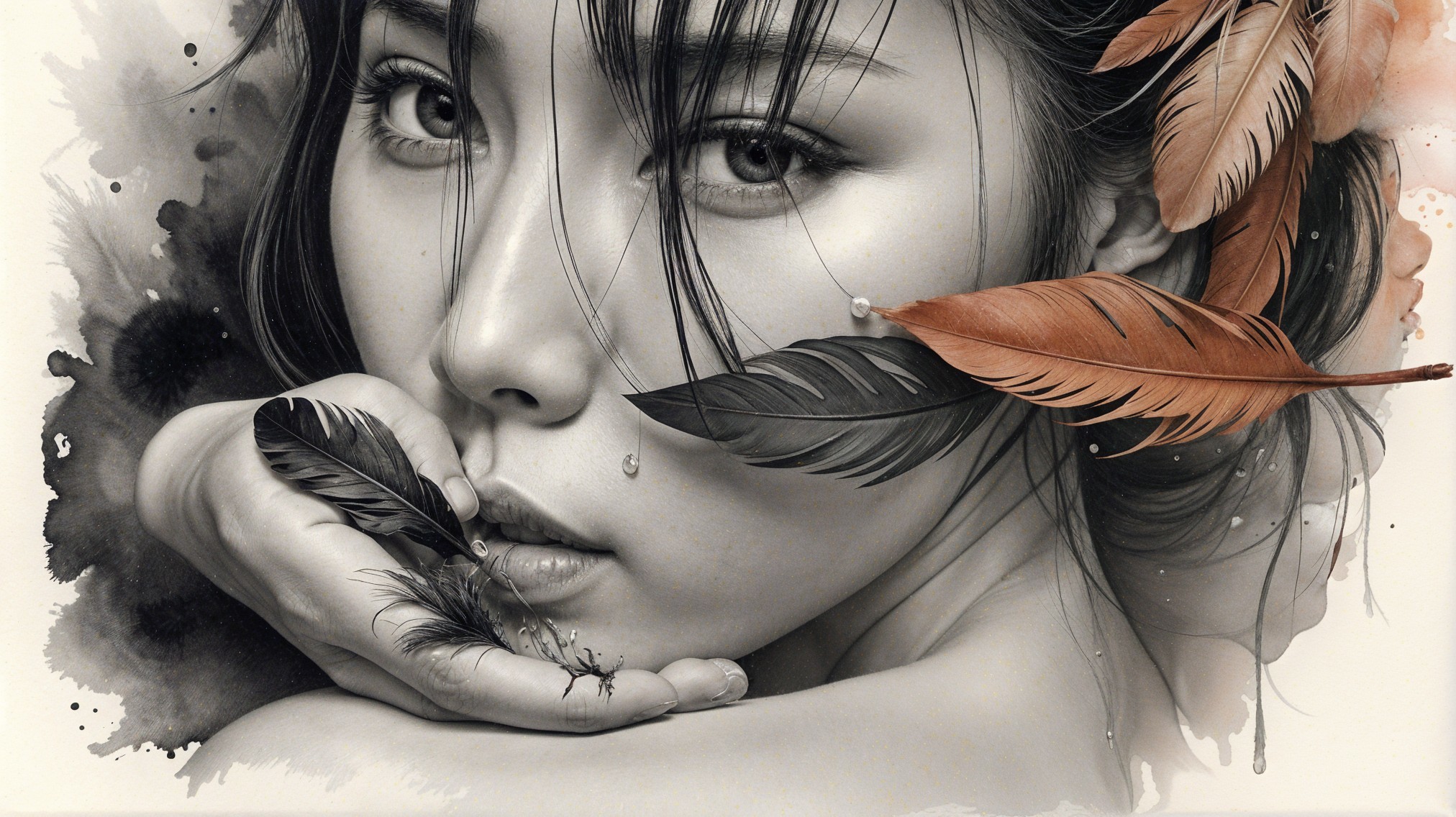 Petals drift around her like small confessions, each carrying a sigh too soft to stay.