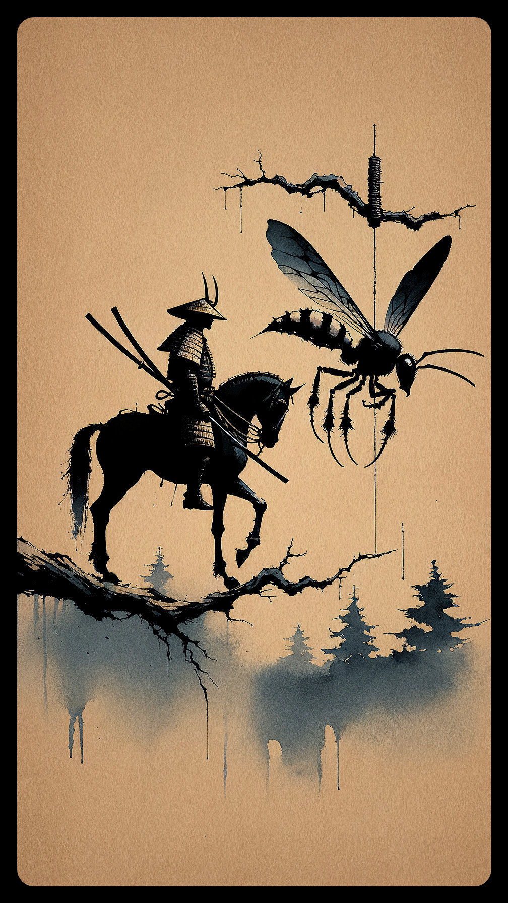 Mystical Pagoda at Sunset with Samurai Ascendents