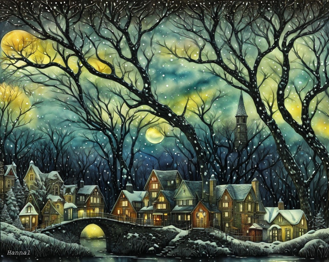 Winter Village by Moonlight