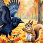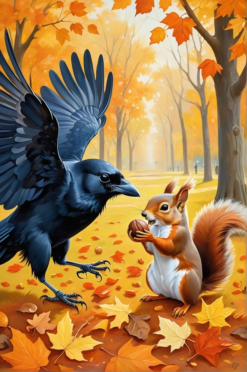 Autumn Serenity: Squirrel and Pumpkin Scene