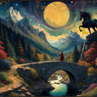 Mystical Night: Woman and Bear Unite