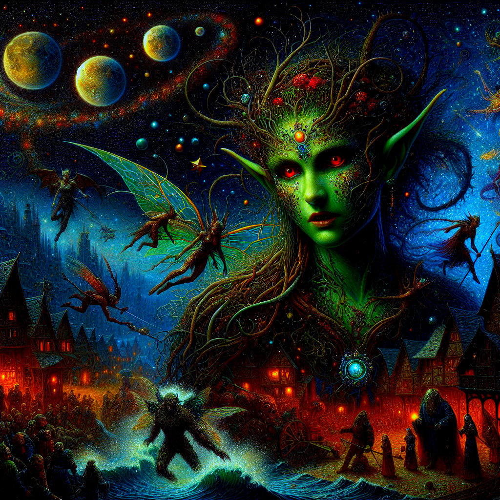 Fairy Battle in a Starry Medieval Realm