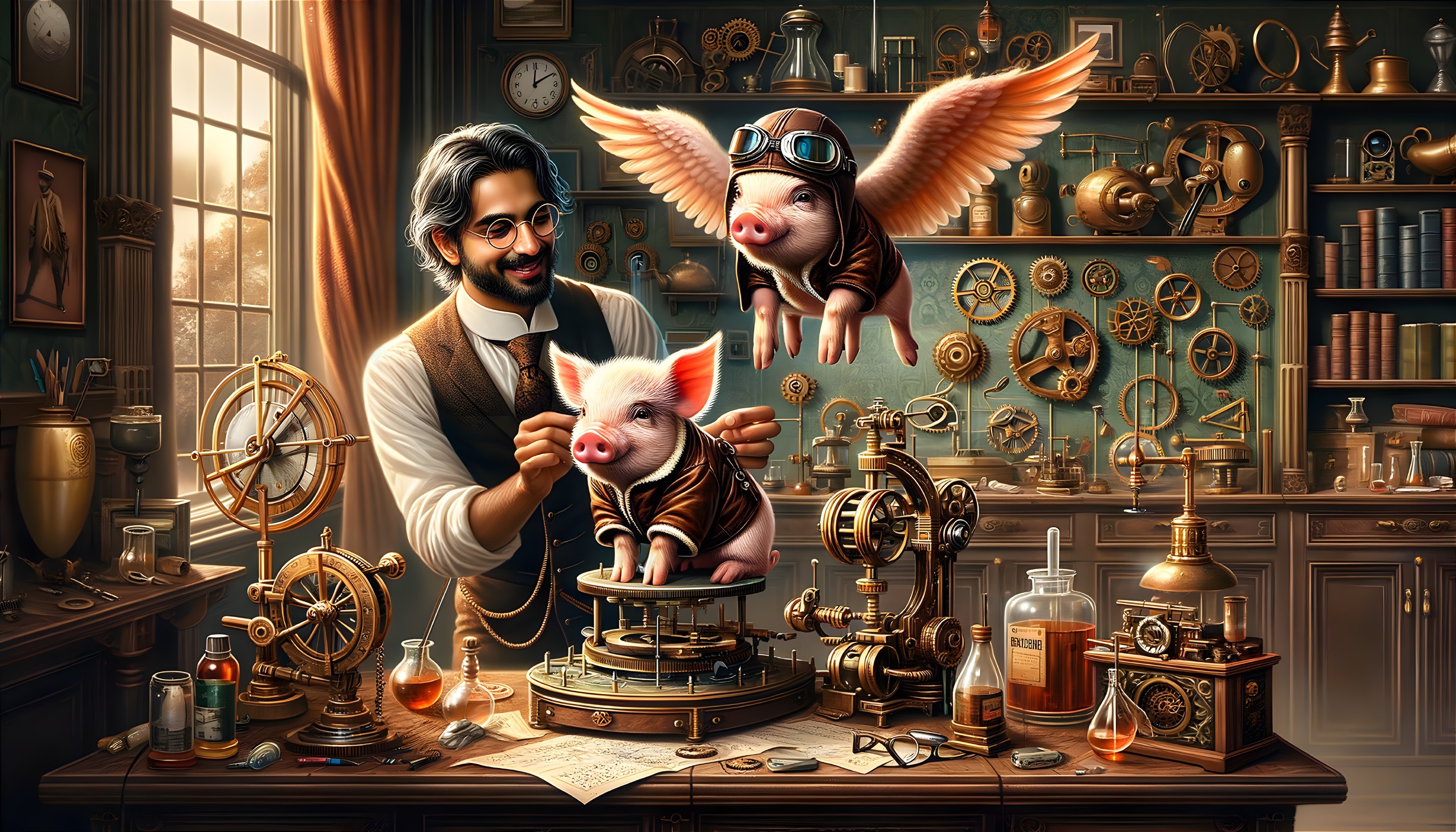 The Flying Pig: Victorian Inventor's Whimsical Creation