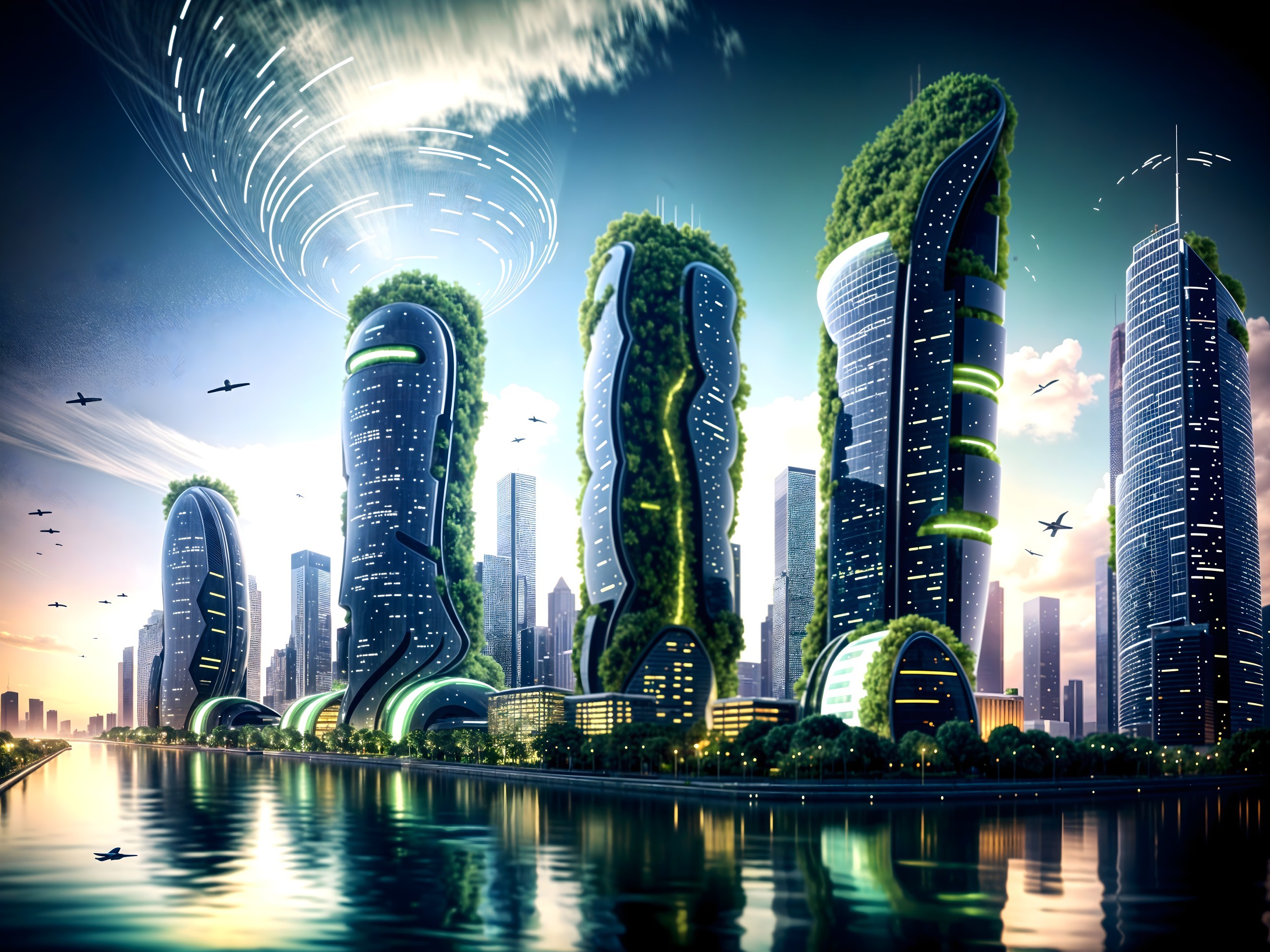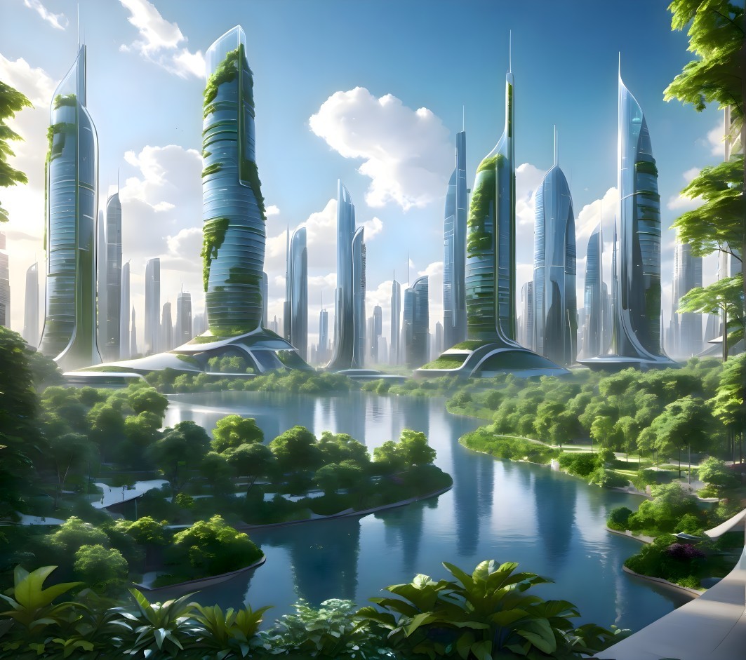 Sky High + Cityscape SK:297:1127. www.omarsolh.com Futuristic Cityscape: Nature Meets Innovation