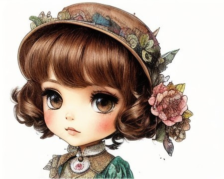 Whimsical Watercolor Portrait: Girl, Birds, Flower