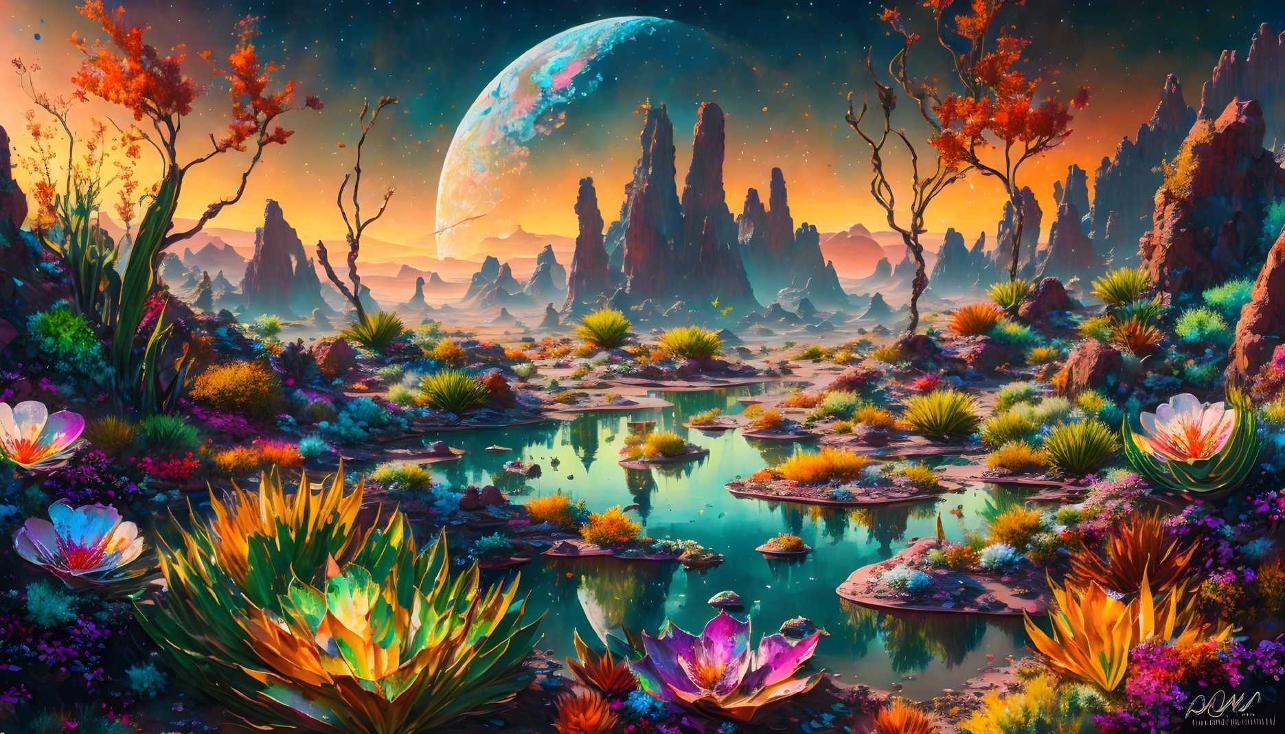 Moonlit Oasis: A Surreal Alien World