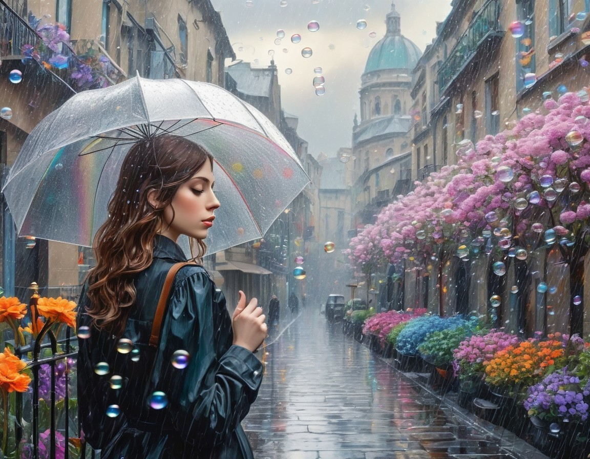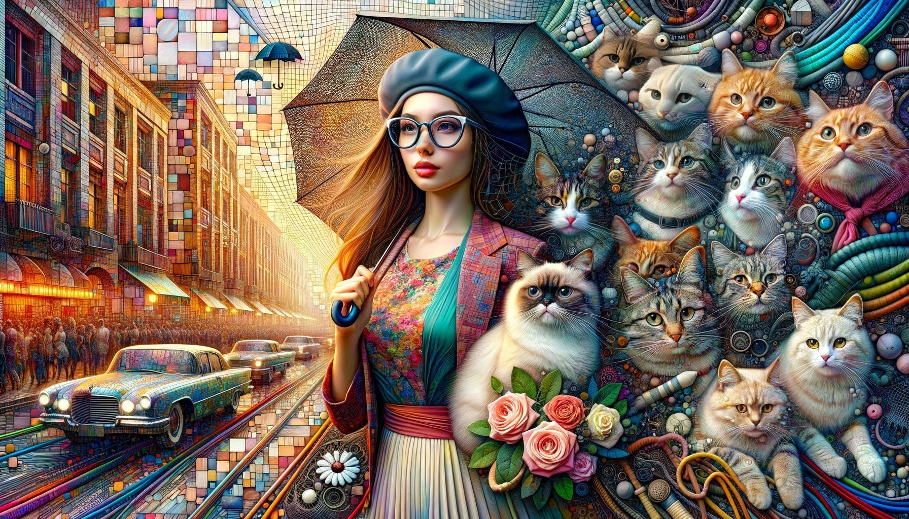 Whimsical Cityscape: The Cat Lady's Umbrella