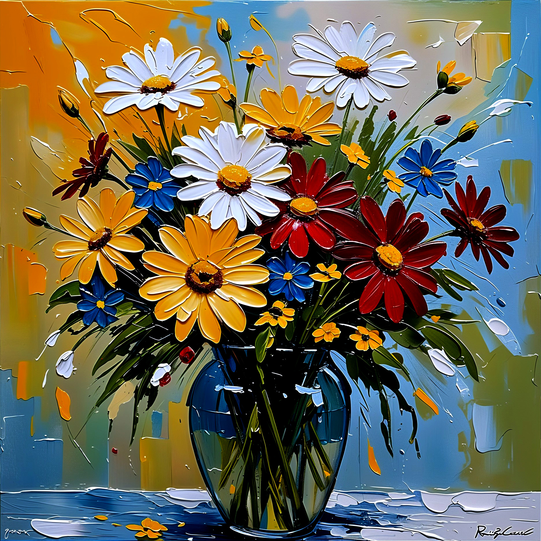 Vibrant Mosaic of Flowers in a Blue Vase