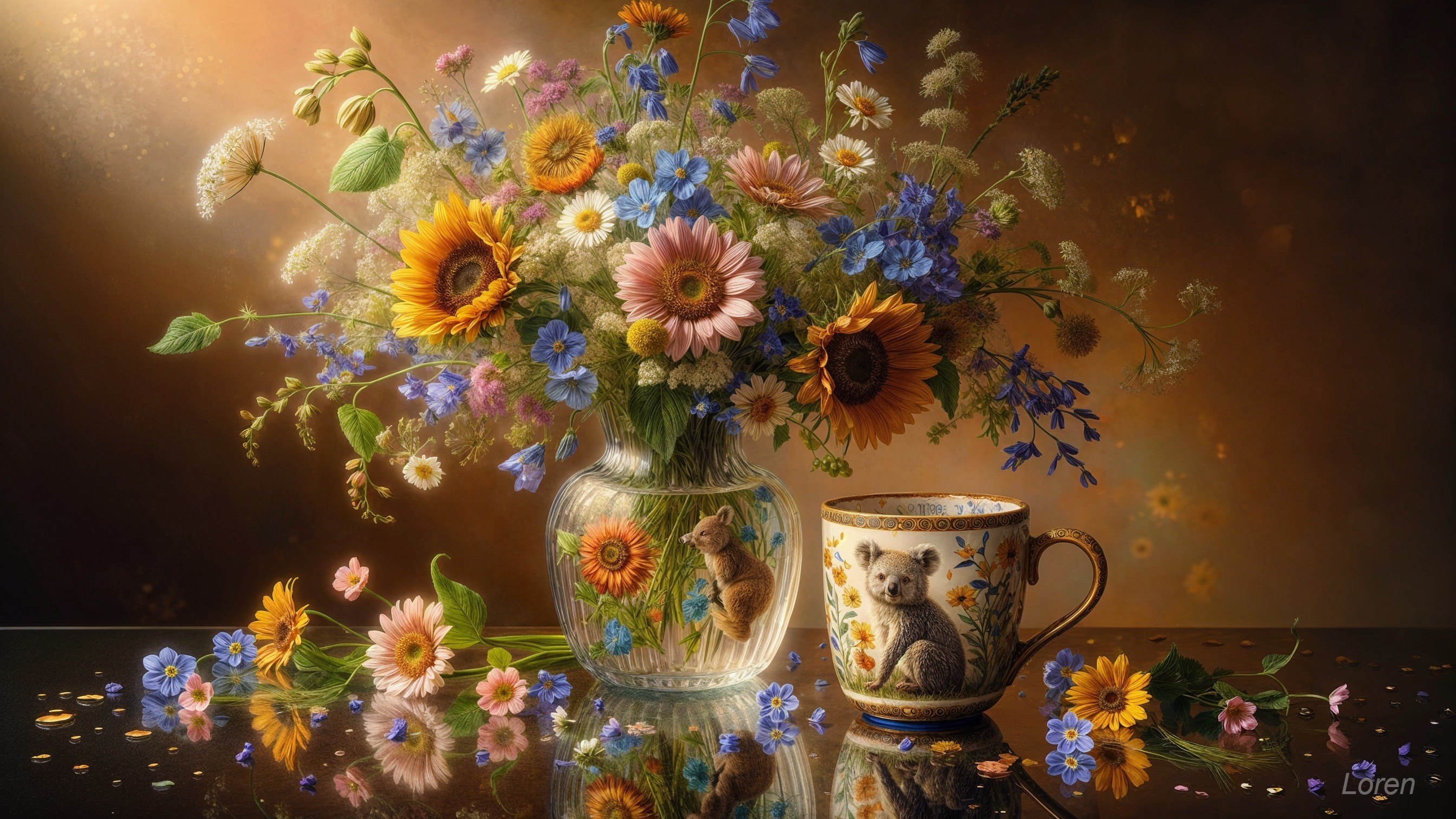Vibrant Still Life with Flowers and Fruits