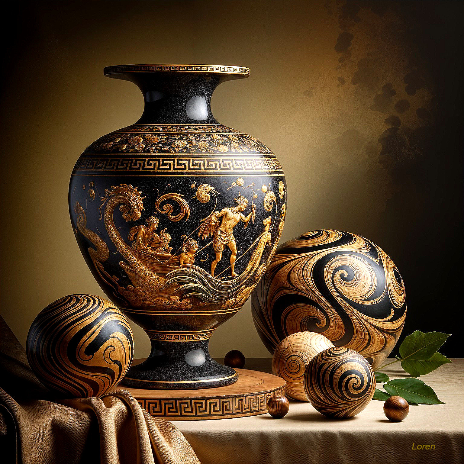 Elegant Black Vase with Gold Mythical Design