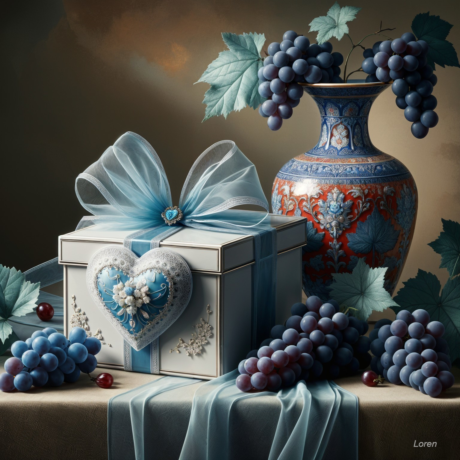Serene Still Life with Heart-Shaped Gift