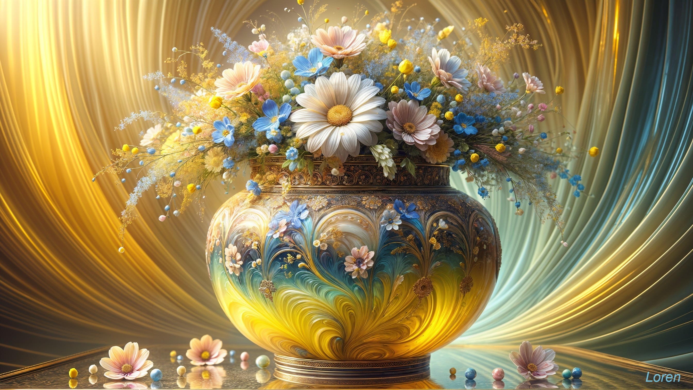 Enchanting Vase with Colorful Floral Display