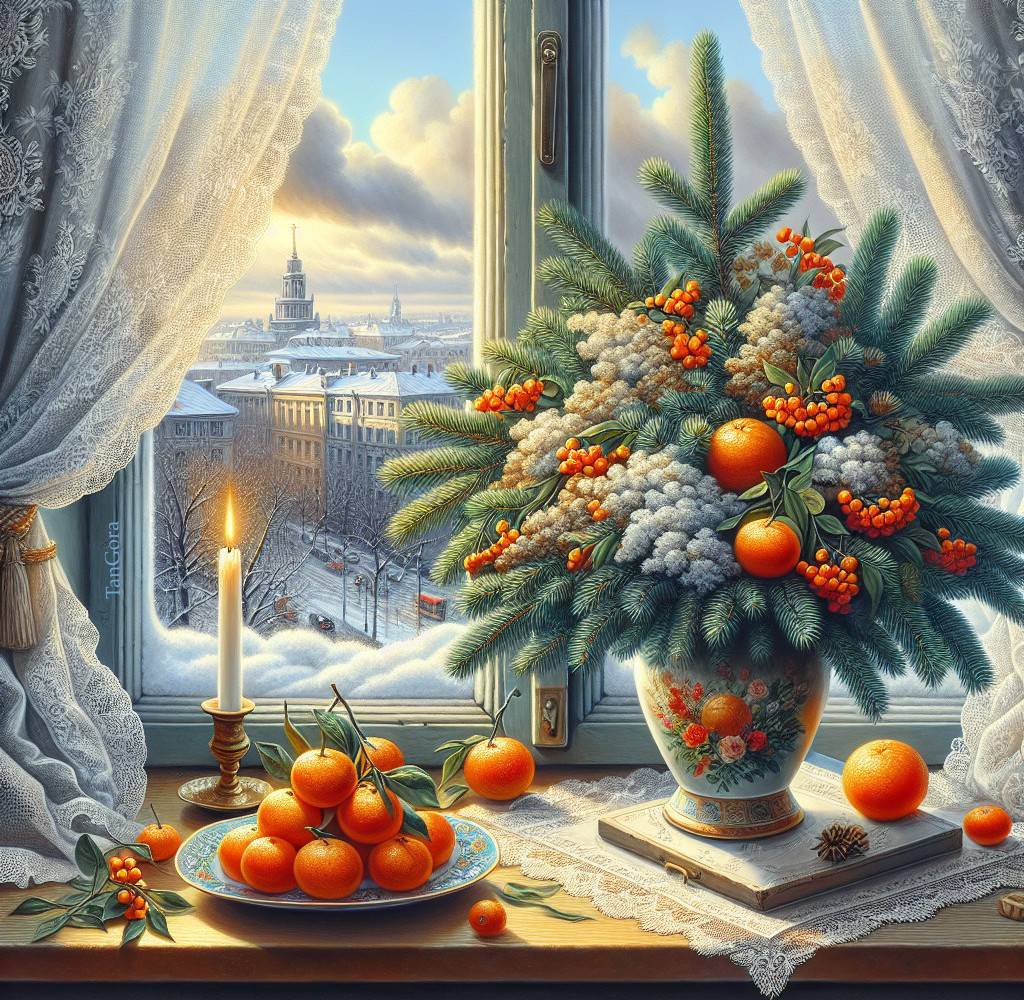 Festive compositions with tangerines.