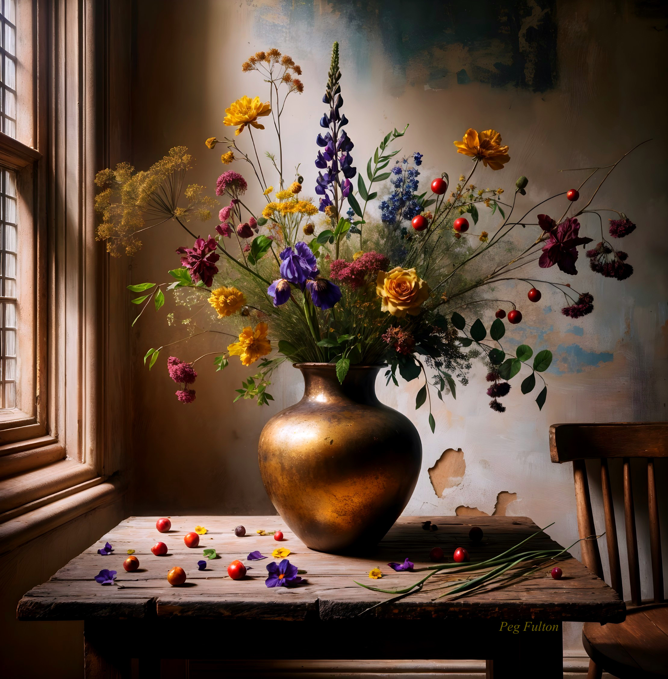Vibrant Vase with Flowers and Apples