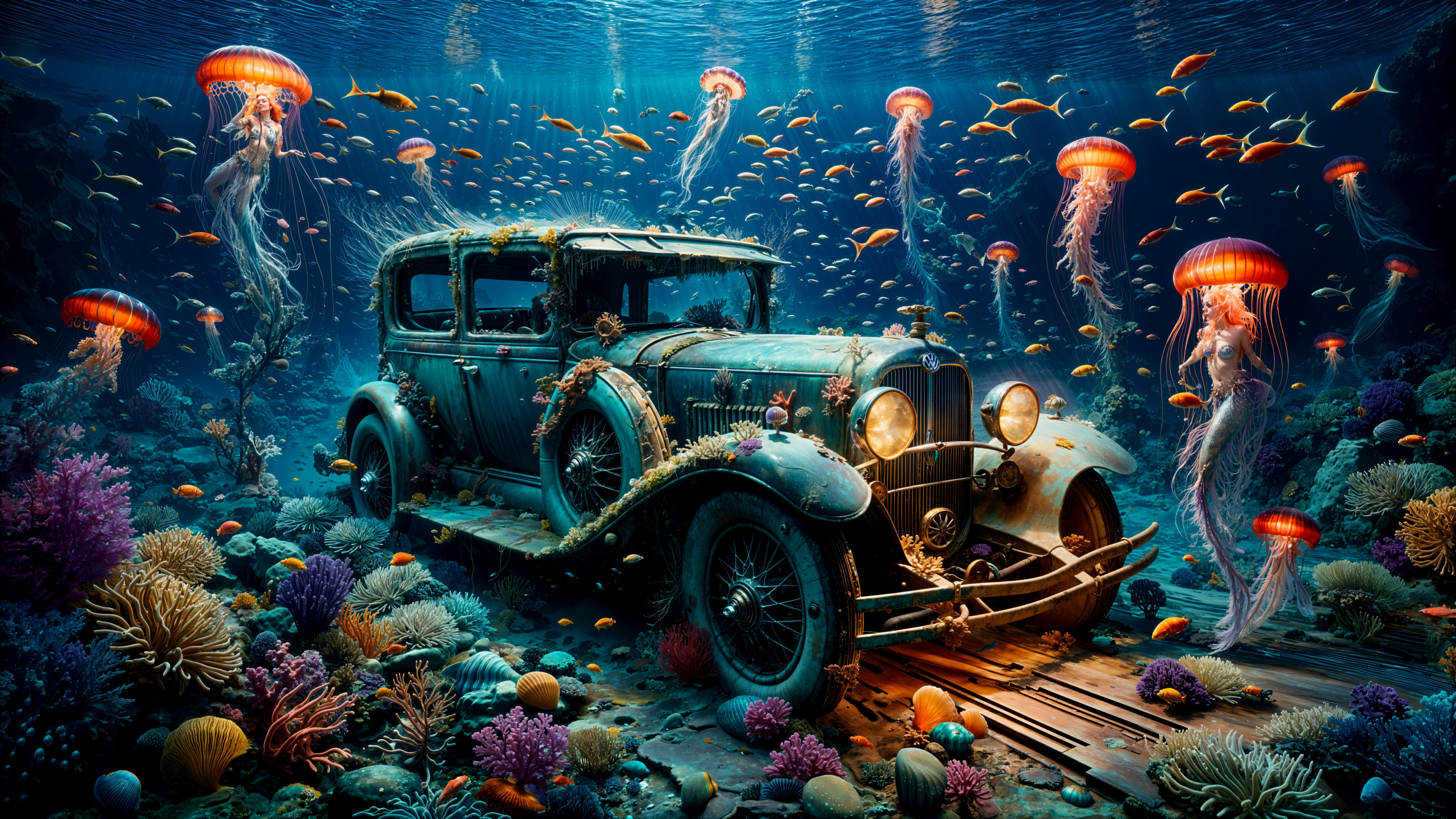 Vintage Car in a Coral Wonderland