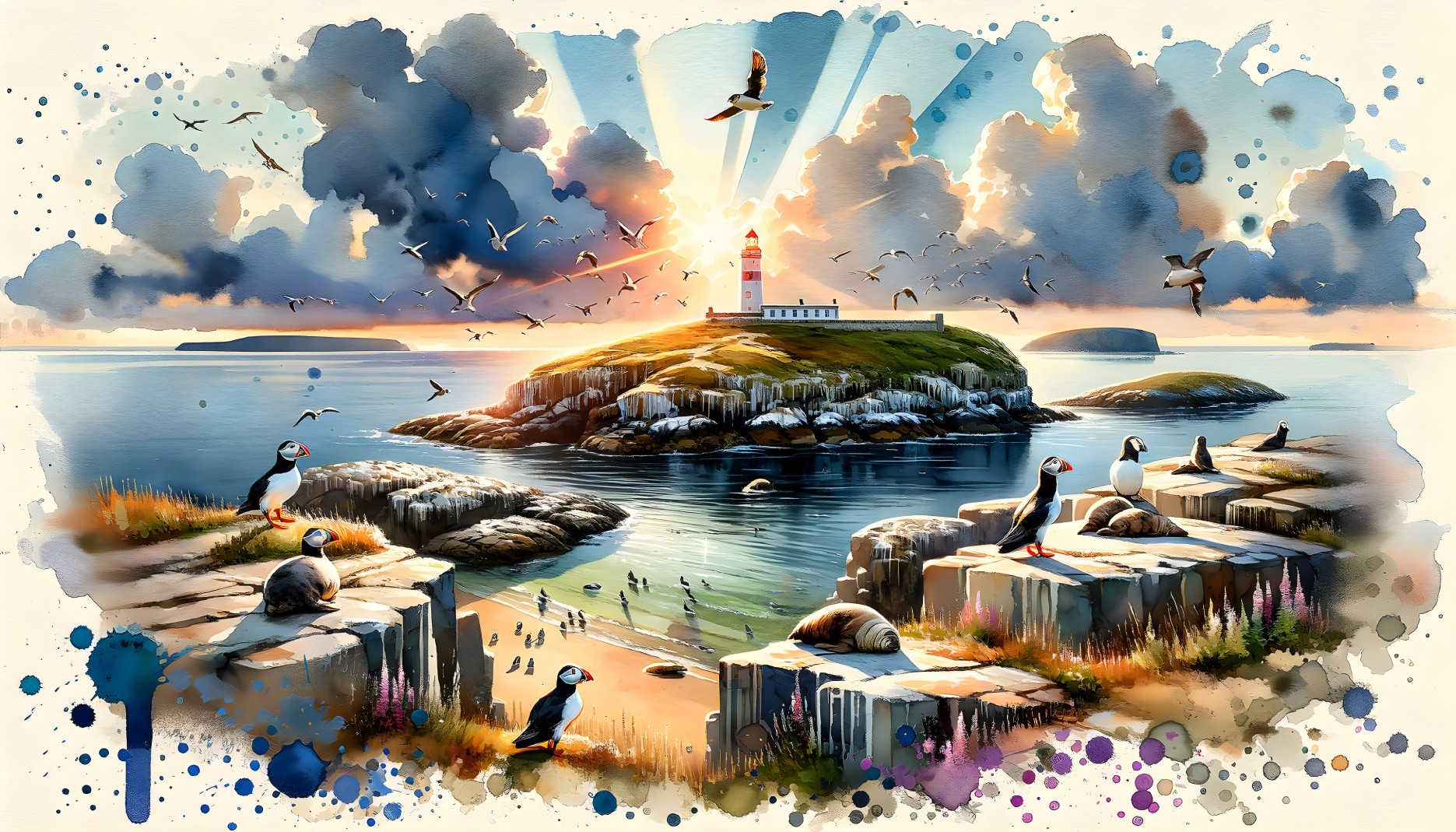 Stylized Walruses on Rocky Shores