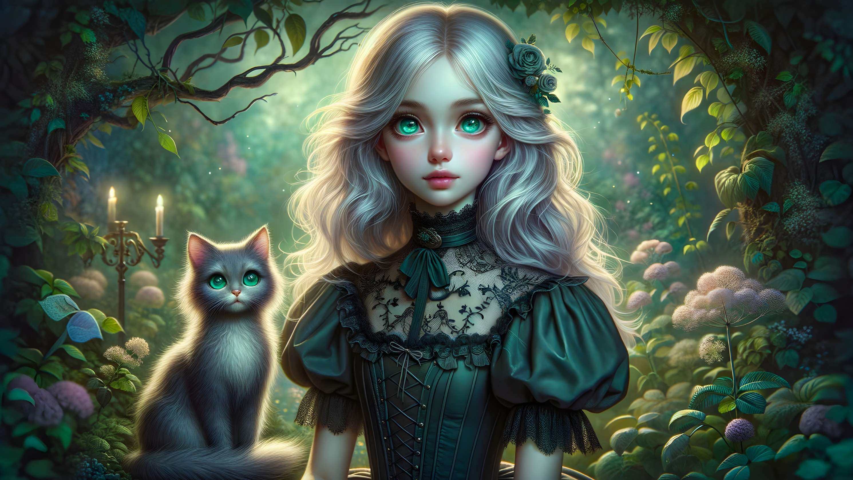 Enchanted Girl in a Floral Wonderland