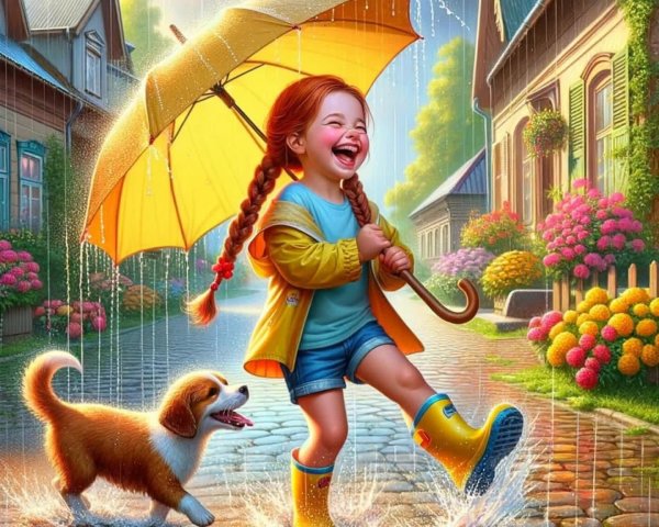 Rainy day. Jean-Baptiste Monge style, watercolor, ink. Picturesque and colorful.