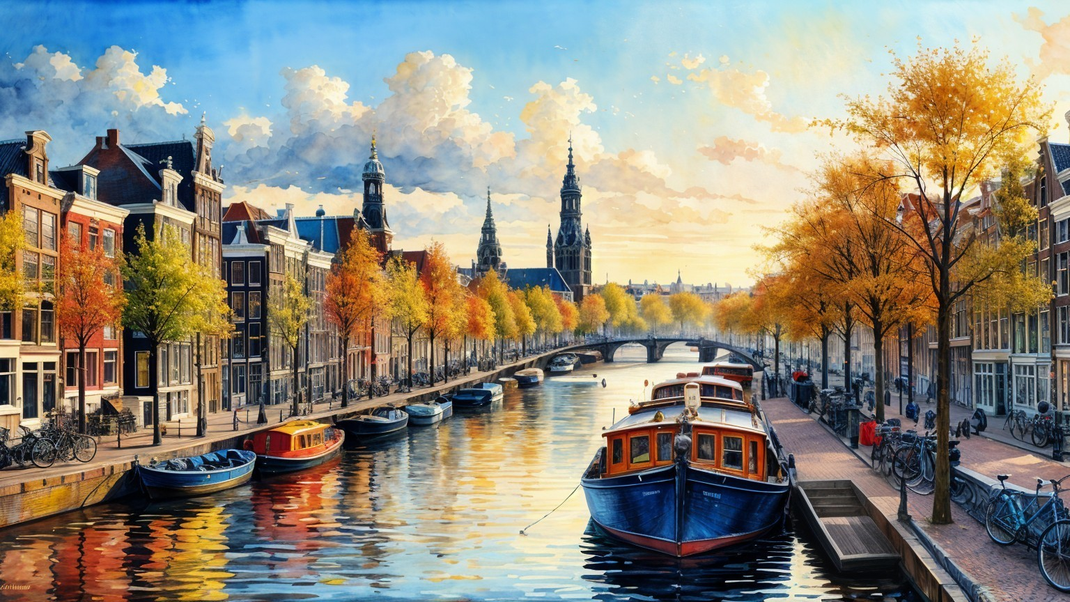 Prompt: Amsterdam skyline from a distance by Karol Bak and Vincent van Gogh, Watercolor, trending on artstation, sharp focus, studio photo, intricate details, highly detailed, by greg rutkowski