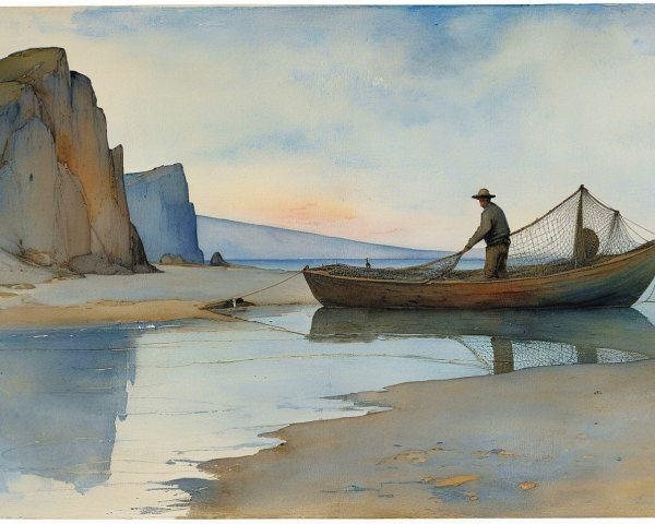 Dramatic Seascape with Whaling Boat and Tall Ships