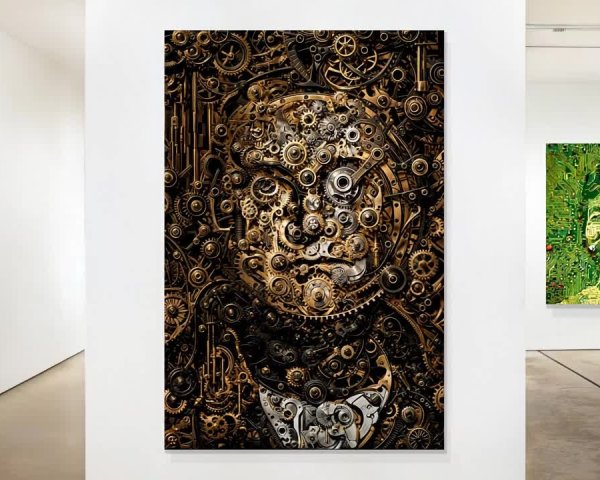 Prompt: A face in the clouds portends the end of time.. Abstract minimalism. Surreal in the style of Hieronymous Bosch, Charles rennie macintosh. Oil painting, palette knife strokes