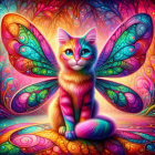 Prompt: A figure with a cat's head is draped in vibrant flowers and foliage, sitting serenely among golden-hued birds and blossoms, creating a magical harmony between nature and humanity.