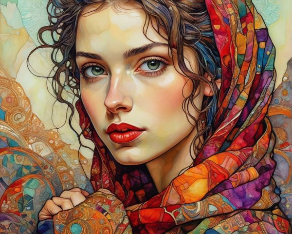 Prompt: Intricately detailed, extremely textured watercolour and pen illustration in style of Jean Baptiste Monge and Adam Oehlers: In an autumn forest, a single very old, heavily wrinkled granny witch with a shy smile and a crumpled witch hat, sits with legs crossed inside a giant hollowed pumpkin which is serving as her house, placed on a moss-covered tree stump. Her body is draped in coarse linen cloth, covered with lichen and vines and autum leaves. Mysterious scene, the vibrant colors include a spectrum of various shades of burnt orange, dark red, earth tones, lime, olive, petrol and a glowing gold shimmer. Intricately detailed watercolour, pastel and ink illustration in the style of Ivan Billibin and Z.L. Feng, by Susanne.