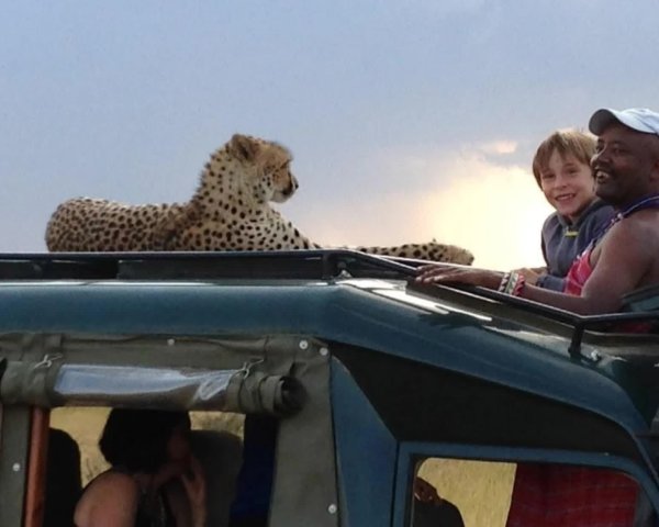 il caresse le léopard