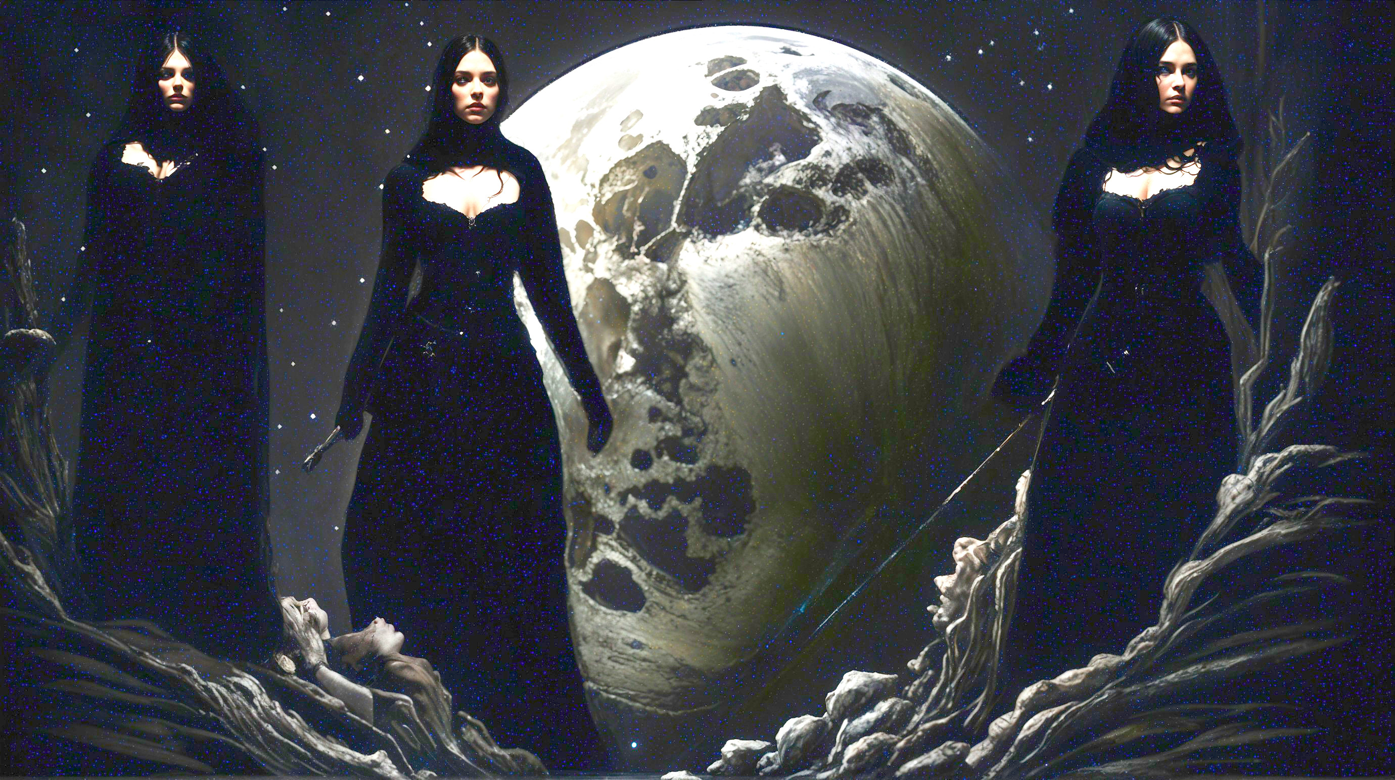 Shadowy Figures Against a Cratered Moon Backdrop 40w